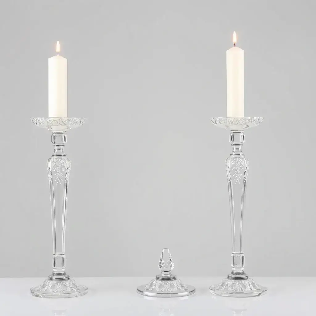 These exquisite crystal candle holders are designed to elevate any holiday table or mantelpiece. Crafted from high-quality crystal with intricate cut patterns, they reflect light beautifully, creating a warm and luxurious ambiance. Their timeless design complements both classic and modern decor, making them a perfect addition to your festive home decor. They embody elegance and festive charm.