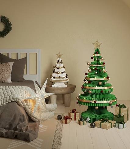 Add a touch of rustic charm to your holiday decor with this Foldable Kraft Paper Artificial Christmas Tree. Crafted from eco-friendly kraft paper, this tree features a unique honeycomb design that expands into a full, symmetrical shape. Its lightweight and foldable nature make it an ideal choice for those seeking a space-saving and sustainable holiday decoration.
