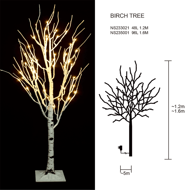 Design: Features a lifelike birch tree trunk with integrated LED lights for a natural aesthetic