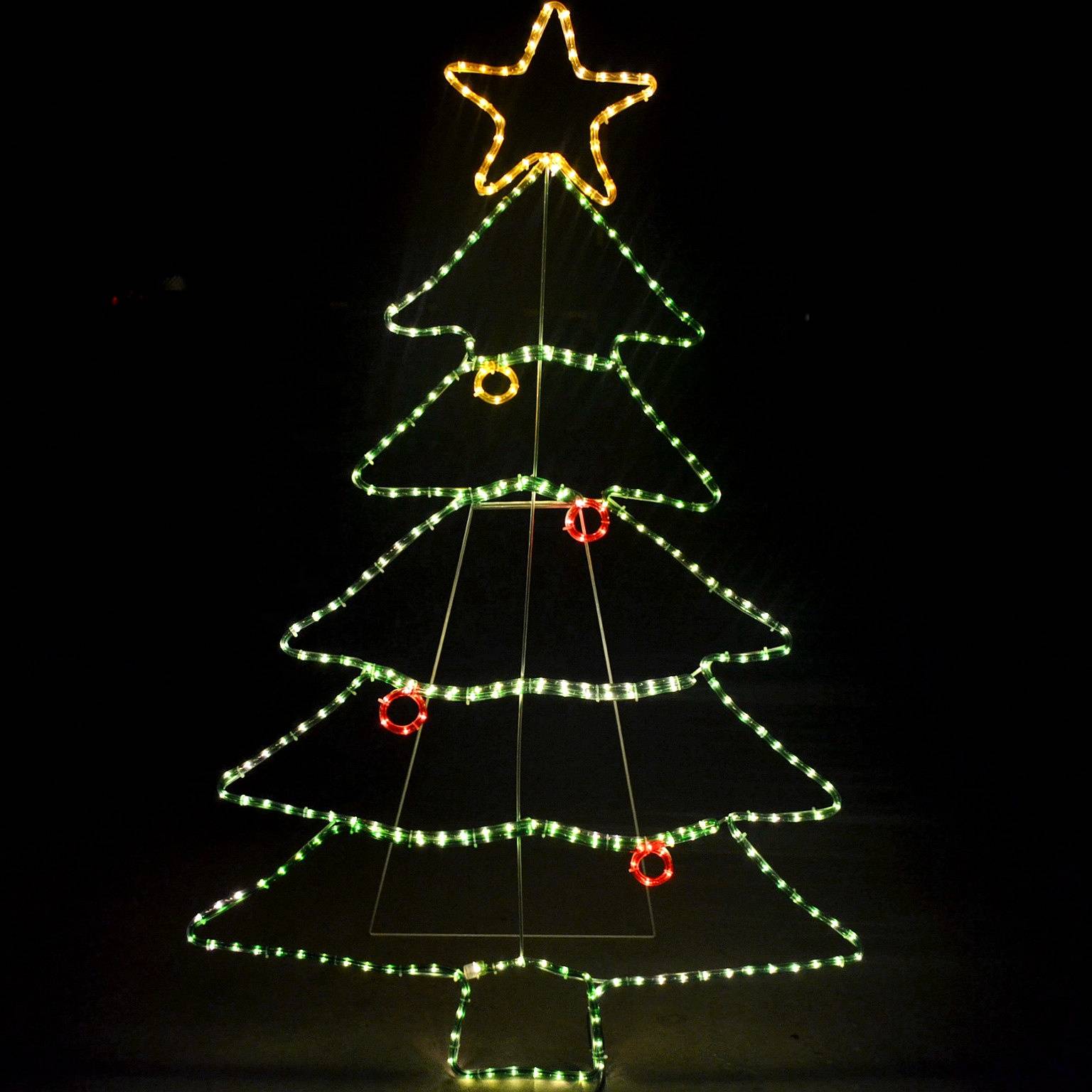 Design: Features a traditional Christmas tree silhouette adorned with LED lights, perfect for holiday-themed displays